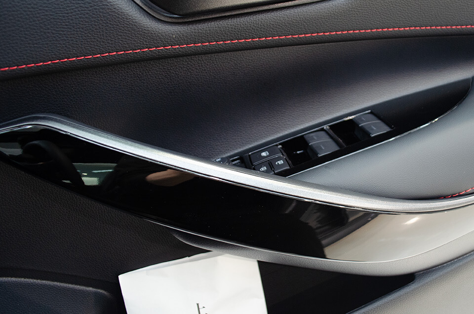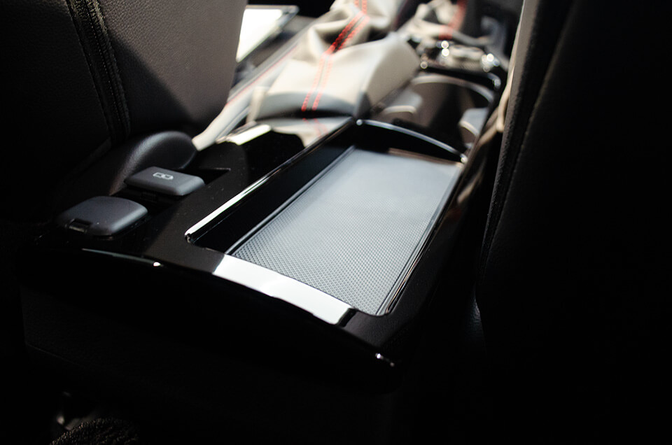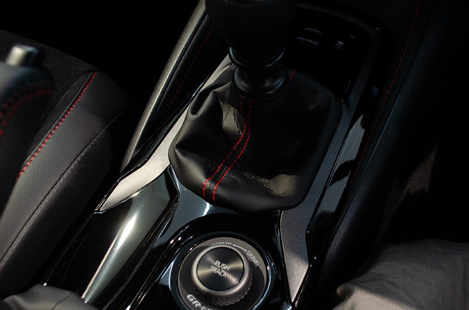 GRカローラはセンターコンソールに大きくピアノブラックのパネルを採用しており、ドアトリムにもあります。