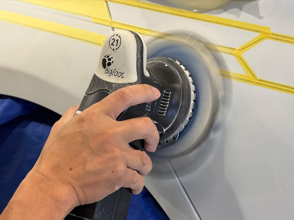 高速回転するポリッシャーを安定して制御しながら、塗装に負担をかけずに面を均一に整える——熟練の職人でなければできない工程であり、ここでどれだけ仕上げられるかが最終的な艶・輪郭の美しさに直結します。