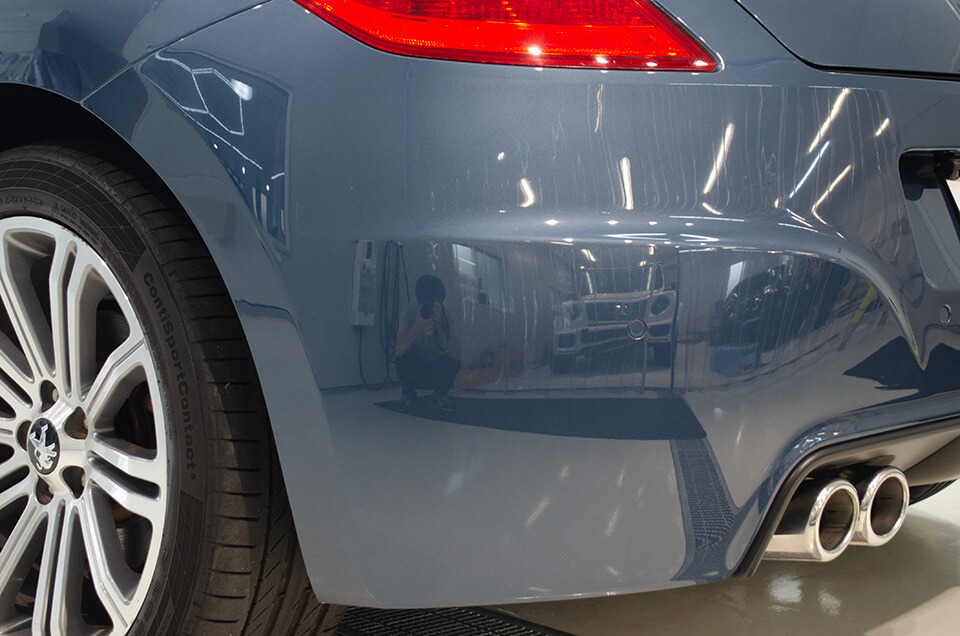 深いブルーのボディカラーが特徴的なお車でしたが、施工後はまるで“透明な膜を一層まとったような”クリアさと艶感が戻りました。