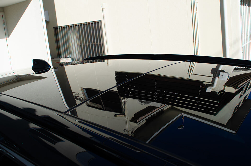 磨くことで小キズや固着した雨染みを除去しますが、その際にできるこの磨き跡をいかに残さないかがコーティングのクオリティを大きく左右いたします。