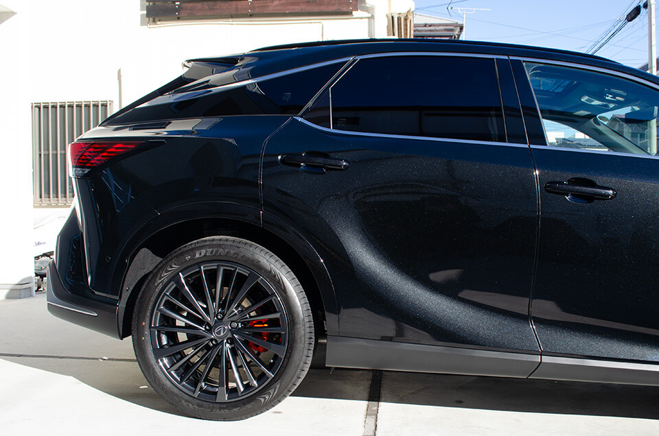RXはボディサイズが大きく面構成もシャープなSUVである一方、黒系カラーでは艶感・反射の質が仕上がりの印象を大きく左右します。